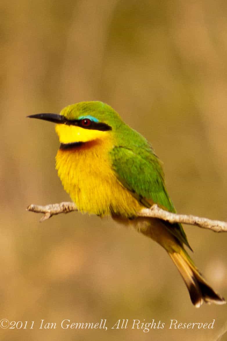 This is an abundant and tame bird, familiar throughout its range. There have been estimated to be between 60-80 million Little Bee-eaters. It breeds in open country with bushes, preferably near water. Just as the name suggests, bee-eaters predominantly eat insects, especially bees, wasps and hornets, which are caught in the air by sorties from an open perch.
